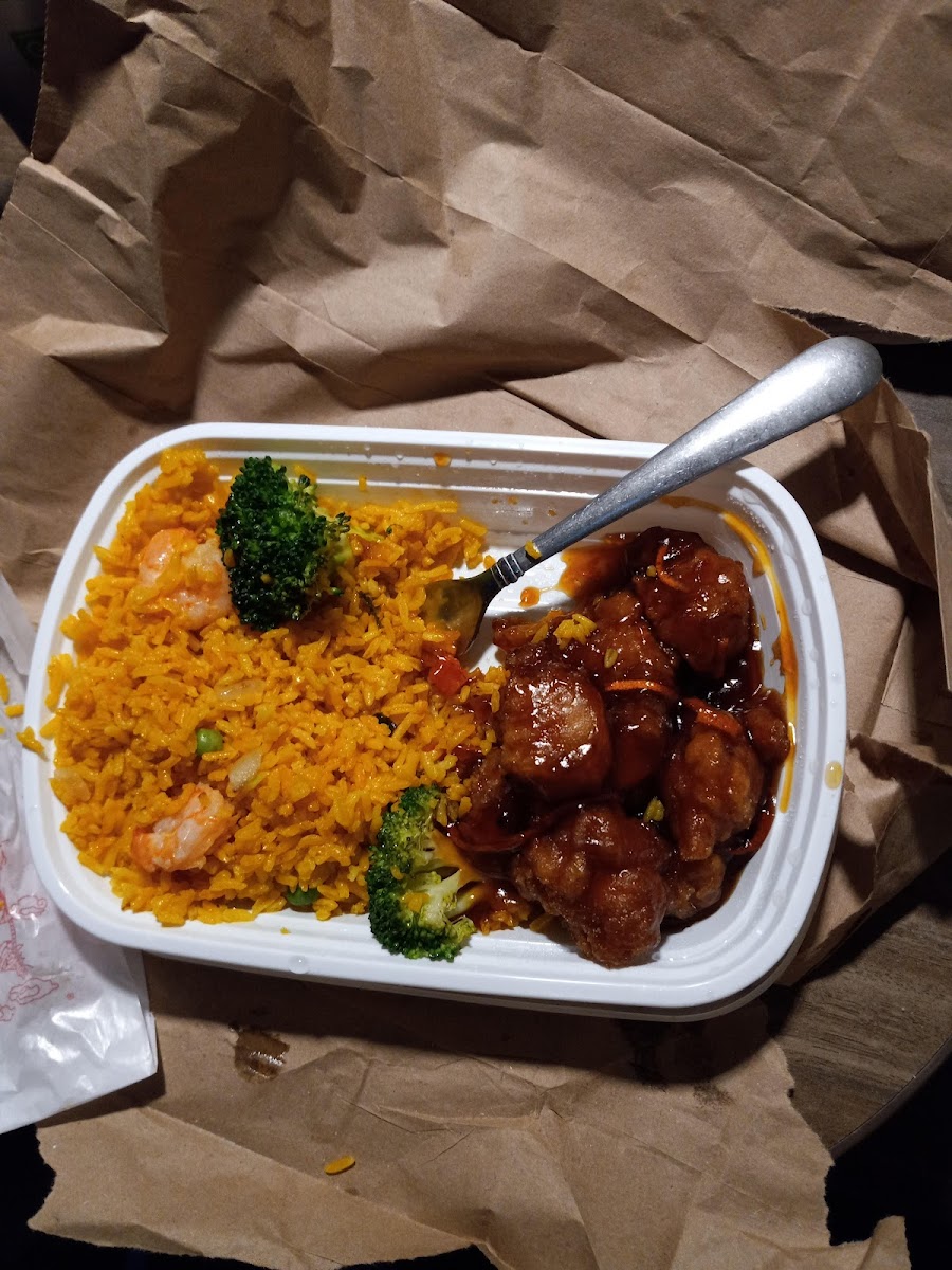 My new favorite is C19 orange chicken with shrimp stir fried rice and a shrimp roll. Really good! Shrimp items extra$ cheese wonton, General Tso was good too.(things I've tried) Curbside pickup only. Call ahead about 15 minutes or order there. Across street from Family Dollar, in little center next to laundromat.